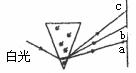 10.如图所示,一细束白光通过三棱镜折射后分为各种单色光,取其中的a、b、c三种色光,并分别让这三种色光通过同一双缝干涉实验装置(双缝间距及双缝与光屏间的距离一定)在光屏上产生干涉条纹,比较这三种色光的光子能量以及产生的干涉条纹间距大小,说法正确的是 ( )