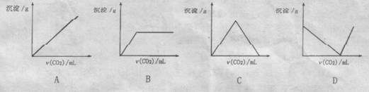 12、将二氧化碳通入澄清石灰水中,有白色沉淀生成,若继续通入二氧化碳,白色沉淀将完全溶解。其反应的化学方程式为:Ca(OH)2 +CO2 = CaCO3↓+ H2O; CaCO3 +CO2 +H2O = Ca(HCO3)2当二氧化碳持续不断地通入澄清的石灰水中时,沉淀质量的变化符合下列图像中的