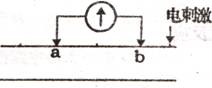 5.如下图甲所示,以枪乌贼的粗大神经纤维作材料,在神经纤维的表面,放置两个相距l-2厘米的电极a和b,在图中的刺激点给予较强的电刺激。依据观测到的电流表指针偏转(向左茏正,向右为负)情况,绘出的曲线如图乙。乙图中能正确表示粗大神经纤维电位变化的是