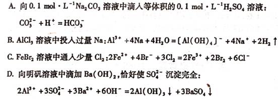 14.下列各组物质问反应可能包括多步反应,其总的离子方程式正确的是r