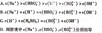 15.已知NaHSO3溶液呈酸性,NaHCO3溶液呈碱性。现有浓度均为仅0.1mol/L的NaHS03溶液和NaHCO3,溶液,溶液中各粒子的物质的量浓度存在下列关系(R表示S或C)。其中正确的是