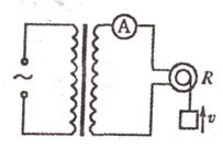 21.如图所示,一理想变压器原、副线圈的匝数比为n:1.原线圈接正弦交变电压U,副线 圈接一个交流电流表和―个电动机.电动机线圈电阻为R,当变压器的输入端接通电源,电流表的示数为I,电动机带动一质量为m的重物以速度v匀速上升,则下列判断正确的是