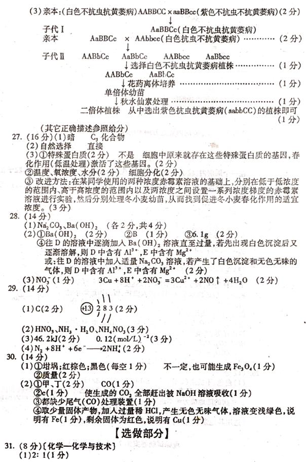 共8个小题,考生必须从中选择2个物理题、1个化学题和1个生物题在答题卡规定