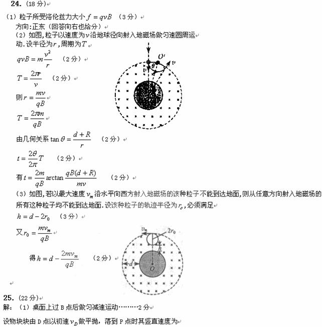 24、(18分)地磁场可以减少宇宙射线中的带电粒子对地球上生物体的危害。如图所示,地球半径为R,地球赤道平面附近的地磁场可简化为赤道上方厚度为