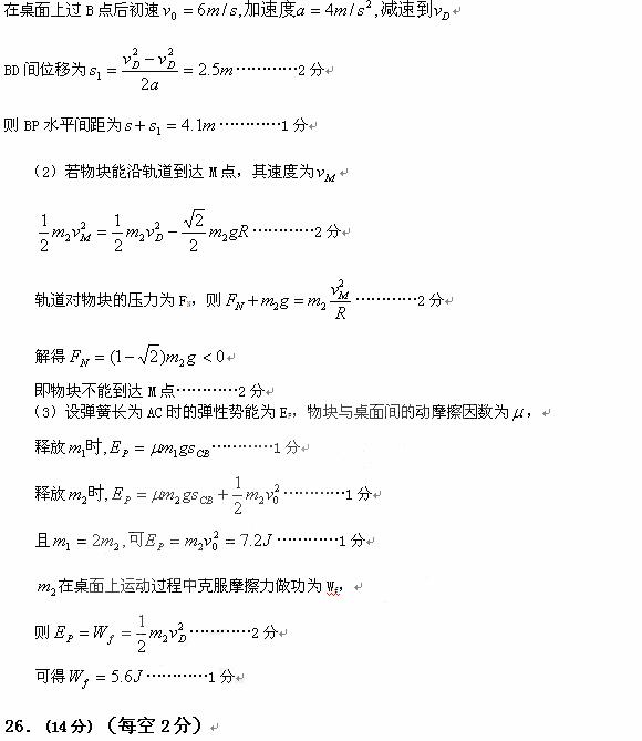 25、(22分)如图所示,水平桌面上有一轻弹簧,左端固定在A点,自然状态时其右端位于B点。w.w.w.k.s.5.u.c.o.m