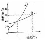 19、(4分)右图是A、B两种物质随温度变化的溶解度曲线。根据右图回答: