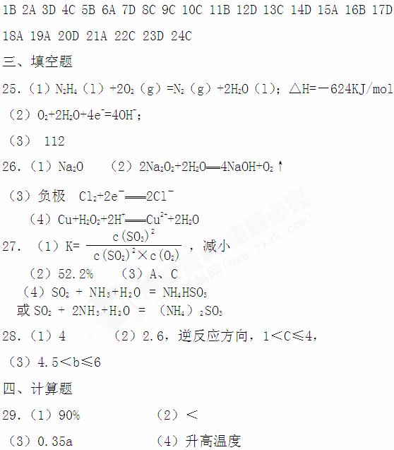 高二化学期中答案