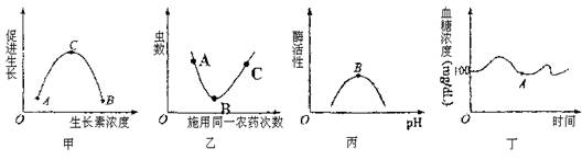 D.丁图曲线A点时,胰高血糖素分泌增加,随后胰岛素分泌增加