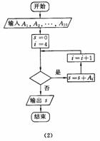例1(广东理,6)图(1)是某县参加2007年高考的学生身高条形统图,从左到右的各条形表示的学生人数依次记为(如表示身高(单位:cm)内的学生人数),图(2)是统计图(1)中身高在一定范围内学生人数的一个算法流程图,现要统计身高在160~180cm(含160cm不含180cm)的学生人数,那么在流程图中的判断框内应填写的条件是(     )