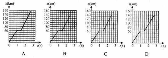 例6(广东理,4)客车从甲地以60km/h的速度匀速行驶1小时到达乙地,在乙地停留了半小时,然后以80km/h的速度匀速行驶1小时到达丙地,下列描述客车从甲地出发,经过乙地,最后到达丙地所经过的路程s与时间t之间关系的图像中,正确的是(     )