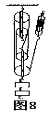 7、小雪和小红在“测滑轮组机械效率”的实验中,一起组装好如图8所示的实验装置,他们分别记下了钩码和弹簧测力计的位置。