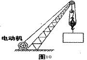 9、如图10所示,建筑工地上的吊车是靠电动机来提升货物,货物重 103N,电动机的额定电流为
