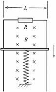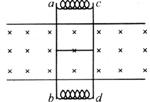 与导轨构成矩形回路。导体棒的两端连接着处于压缩状态的两根轻质弹簧,两棒的中间用细线绑住,它们的电阻均为R,回路上其余部分的电阻不计。在导轨平面内两轨道间有一竖直向下的匀强磁场,开始时,导体棒处于静止状态,剪断细线后,导体棒在运动过程中