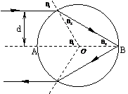 ,今有一束平行光沿直径AB方向照射在玻璃球上,试求离AB多远的入射光线最终射出后沿原方向返回。