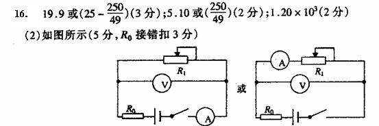 (1)为了测量定值电阻的阻值及两表的内阻,某同学设计了如图10(甲)所示的电路。在某次测量中电压V1、V2的示数分别为1.20V、1.45V ;电流表A1、A2的示数为48.0mA、50.0mA,则定值电阻的阻值R0= Ω;电流表的内阻RA= Ω;电压表的内阻RV= Ω.