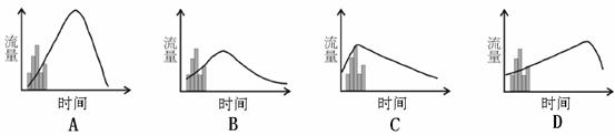 10.图中柱状图代表一次的降雨量。最能显示造林成功后的河流流量变化曲线是( )![]()