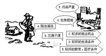 (4)大量农村人口迁入城市,既积极地推动了城市的_______发展,同时也给城市的________造成巨大的压力。