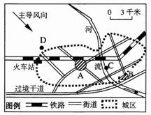 (1)图中A是该市的商业中心,其布局原则是 ;B为该市新建的专业性商品交易市场,其布局原则是 。