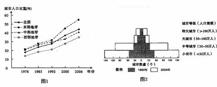 (1)读图1、2,分析改革开放以来我国城市化进程的主要特点。