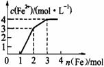 步加入铁粉,溶液中Fe2+ 浓度与加入铁粉的物质的量之间的关系