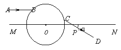 光束AB平行于MN射向球体,B为入射点, AB与MN间距