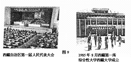 材料7 .50年来,党中央和国务院为促进西藏经济社会发展,对西藏实施了一系列优惠政策,在财力、物力、人力等方面给予强有力的支持。据统计,仅在基础设施建设方面,1951年至2008年,国家就累计投入1000多亿元。在中央的关怀和全国的支援下,西藏人民群众充分发挥自己的聪明才智,结合本地实际,大力发展旅游业,西藏经济社会发展突飞猛进。据统计,1959年至2008年,西藏生产总值由1.74亿元增长到395.91亿元,按可比价格计算,增长65倍,年均增长8.9%。西藏人民的宗教信仰自由和正常的宗教活动也受到保护。