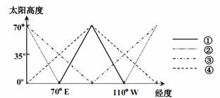 15.如果该季节北印度洋洋流自东向西流动,则下图中表示此时赤道上太阳高度分布规律的曲线是