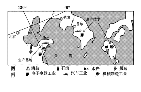 24.环黄海经济圈包括中国、日本和韩国的沿黄海地区。我国借鉴日、韩发展的经验,加强与它们的合作,努力创新,有力地推动了经济的发展。根据材料和下图回答问题。