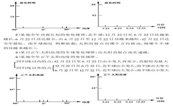 (2)极昼最大范围与晨昏线的切点 24点和极夜最大范围与晨昏线的切点12点互为对跖点。