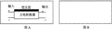 ①设计一个电路,要求力电转换器的输入电压可调,并且使电压的调节范围尽可能的大,在图B方框中画出完整的电路图。