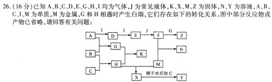 (4)M与气态J在高温时反应的化学方程式是 ________________________ 。