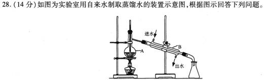 28.【答案】 (1)温度计水银球插入位置,冷水进、出口位置错误(4分)