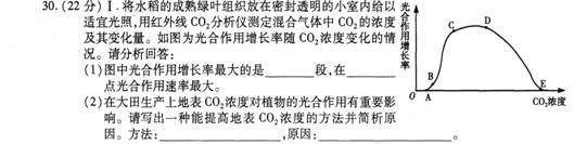 30.【答案l (除标注外,每空2分)1.(1)CD(3分) E(3分)(2)施用农家肥 通过微生物的分解作用(呼吸作用)增加地表C02浓度