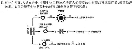 Ⅱ.③量取两组等量的甲状腺激素制剂,一组进行水浴高温处理。然后冷却至与另一组温度相同;(2分)④在相同的适宜外界环境条件下,向A组小白鼠注射适量的甲状腺激素制剂,向B注射等量的经过高温水浴处理的甲状腺激素制剂;(2分)实验结果的预测和结论: