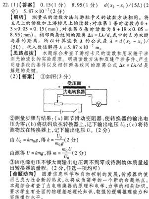 22.(17分)(1)某同学用如图甲所示的实验装置,做《用双缝干涉测光的波长》的实验,他用带有游标尺的测量头(如图乙所示)测量相邻两条亮条纹间的距离a。转动测量头的手轮,使分划板的中心刻线对齐某一条亮条纹(将这一条纹确定为第1亮条纹)的中心,此时游标尺上的示数情况如图丙所示;转动测量头的手轮,使分划板的中心刻线对齐第6亮条纹的中心,此时游标尺上的示数情况如图丁所示,则图丙的示数Xl=________mm