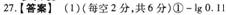 31.【答案】 I.(1)隐(2分)X(2分) 12.5(2分)