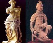 3.右图是公元前3世纪前后,古希腊的著名雕像《维纳斯》和中国秦朝的兵马俑。下列对两者的表述正确的是( )