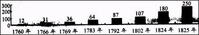 9.查尔斯・P金德尔伯格在《世界经济霸权1500--1990》一书中记录的英国每年申请专利数变化如下图。下列现象与图中反映的历史事实有明显因果关系的是( )