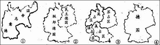 17.下列四幅地图反映了德国历史上的版图变化情况。其变化顺序正确的是( )