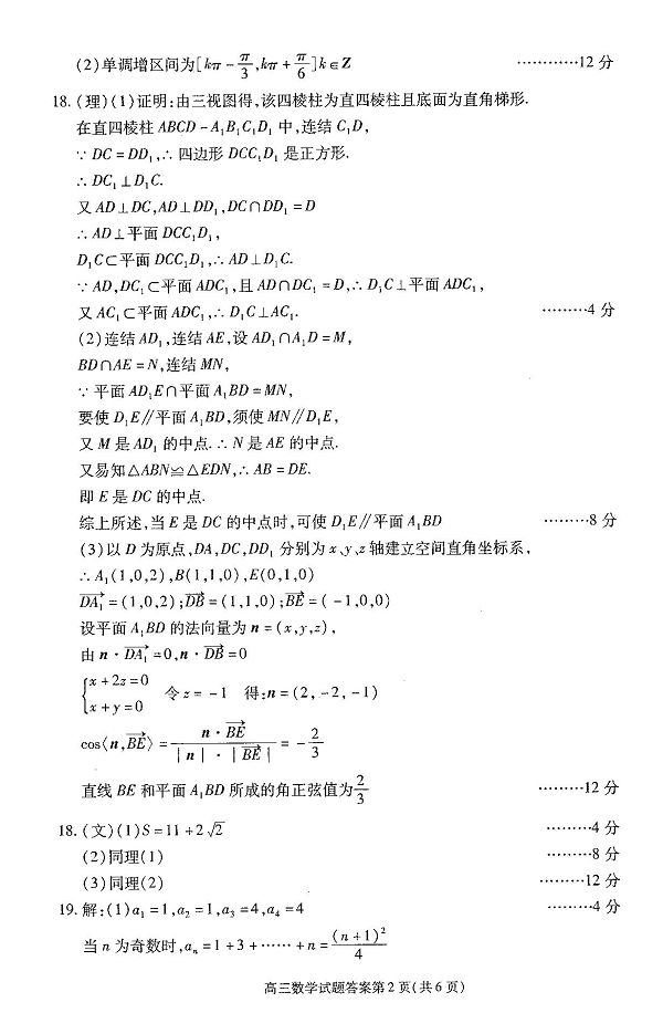 18、(本小题满分12分)四棱柱ABCD―A1B