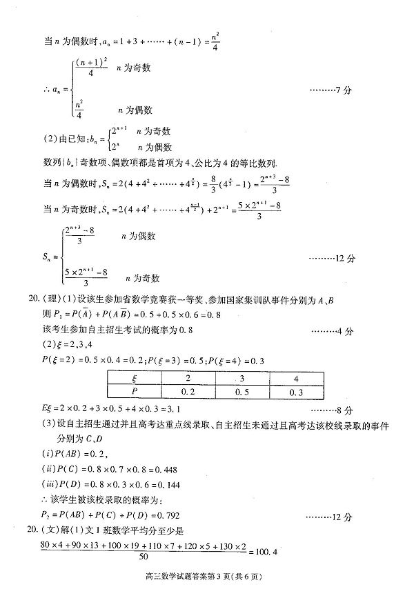 20、(本小题满分12分)有一高二学生盼望进入某名牌