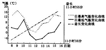 读图3济南市某时段气温和昼长变化示意图,回答17-18题。