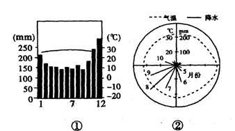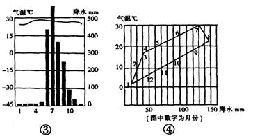 8.若图中有甲、乙、丙、丁四地,其对应的年均温和年降水量分别为(