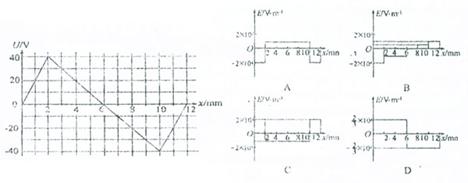 19.有一静电场,其电场强度方向平行于x轴。其电势U随坐标x的改变而变化,变化的图线如左图所示,则右图中正确表示该静电场的场强E随x变化的图线是(设场强沿x轴正方向时取正值):