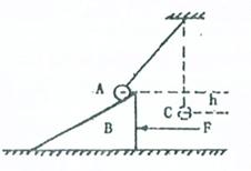 20.如图所示,重球A放在光滑的斜面体B上,A、B质量相等,在力F的作用下,B在光滑水平面上向左缓慢移动了一段距离,使A球相对于最低点C升高h,若突然撤去外力F,则