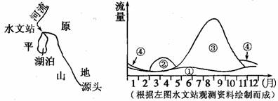 (2)图中a、b两条支流,水流较湍急的是______,判断依据是__ _,它们的主要补给类型为_ __,河流径流量的变化特点为____ __。(5分)