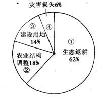 读右图“近年来我国耕地减少的因素构成图”。回答下面两题。