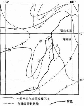 (3)图中河流易出现的水文灾害是 ,并简述鄂尔多斯高原内流区的形成原因。(3分)