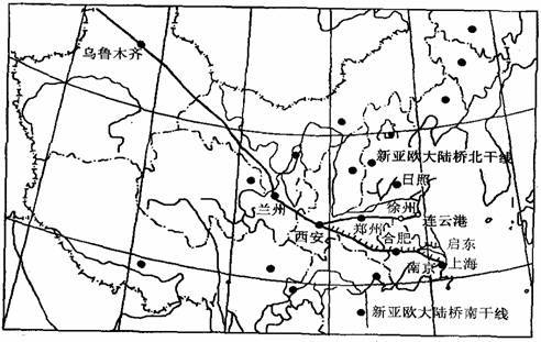 (1)新亚欧大陆桥南干线,穿越了我国一条重要地理分界线,该分界线名称为 。(1分)