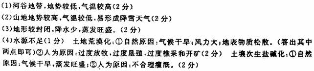 (4)图示地区发展农业生产的限制因素是 。指出图示地区土地利用过程中可能出现的环境问题并分析原因。(7分)